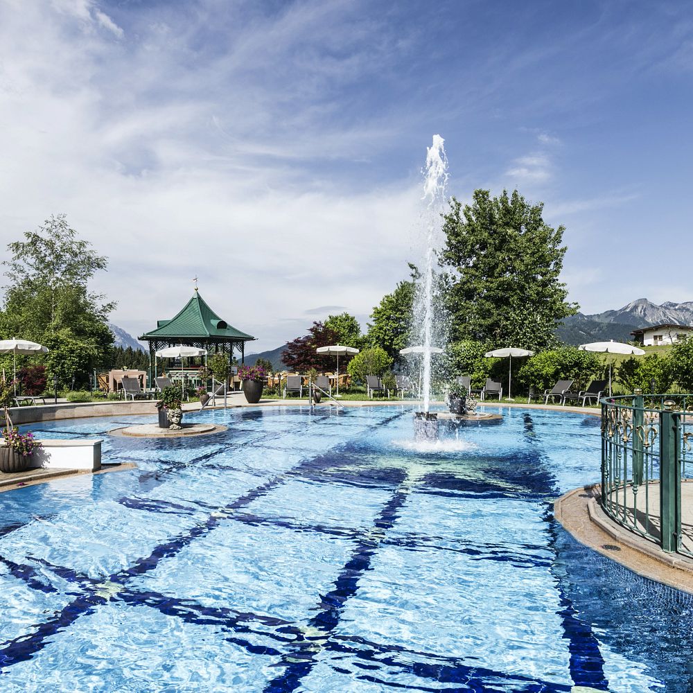 Was gibt es Schöneres als einen sonnigen Sommertag entspannt am Pool zu verbringen? Unser großzügig angelegtes Erlebnisbecken mit wohltuenden Massagebänken/Düsen verführt zum Schwimmen und sich treiben lassen. Gemütliche Liege- und Entspannungsbereiche, umgeben von zauberhafter Natur laden zum Genießen, Lesen und Träumen ein.