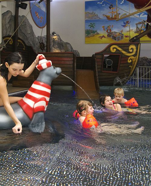 - Kinder-Badelandschaft, Piratenland mit Piratenschiff & Wasserrutsche, Erlebnisbecken im Freien