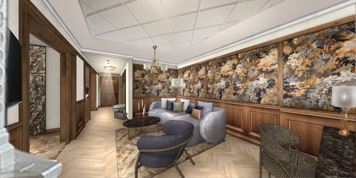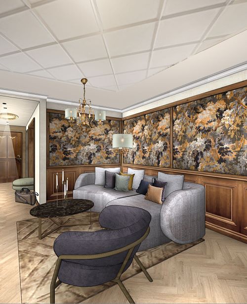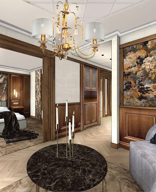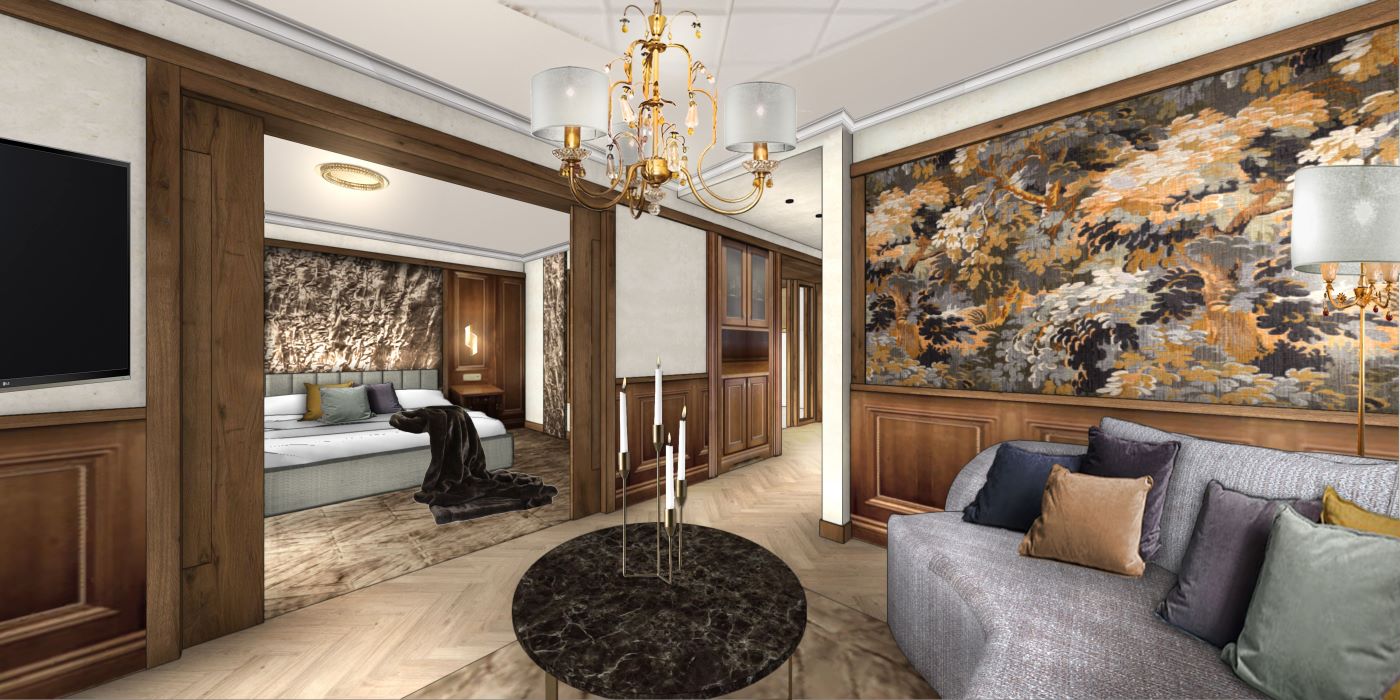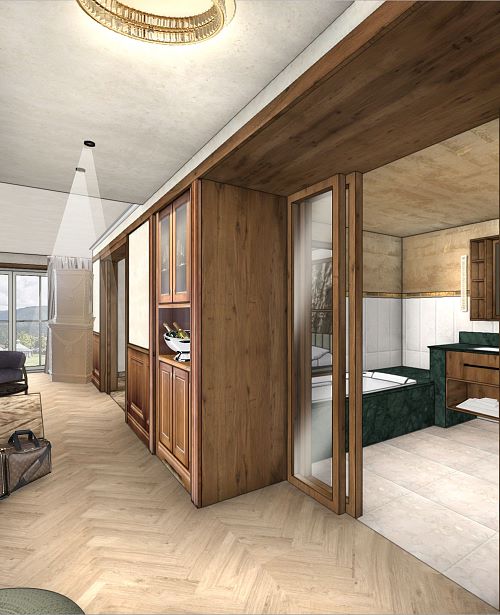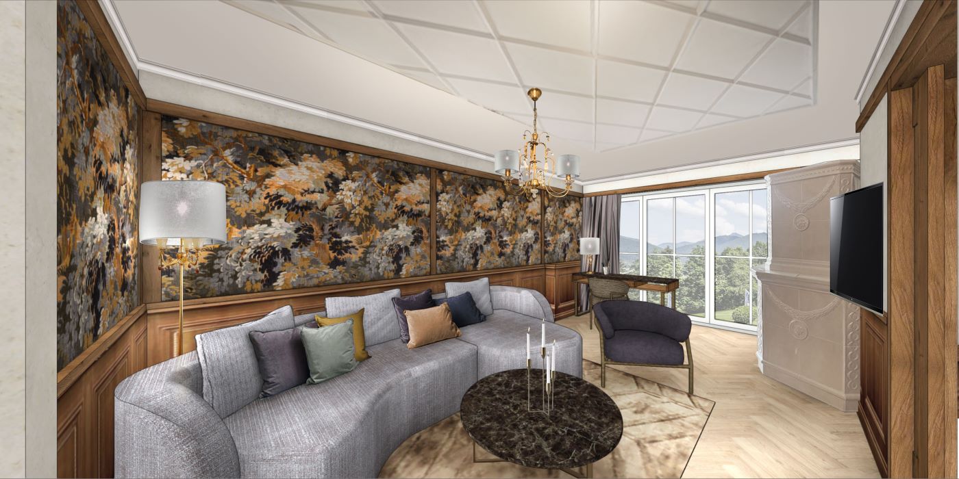 Suite in the Romantikschlössl - exclusive living room with oven, separate bedroom, large wardrobe area, spacious comfort bath with walk-in shower and tub, sauna separate toilet with bidet, balcony